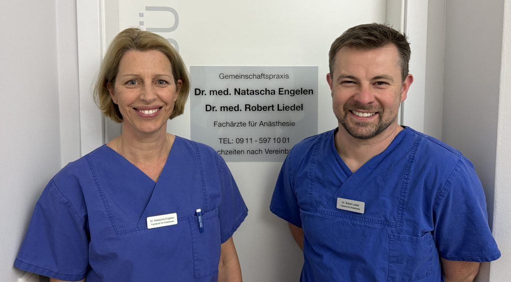 Unsere Gemeinschaftspraxis in Nürnberg vereint mehr als 25 Jahre Erfahrung. Dr. med. Natascha Engelen und Dr. med. Robert Liedel sind Spezialisten im Bereich der Anästhesie mit Spezialisierung in der Kinderanästhesie.